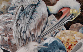 Pelicans on Rocks